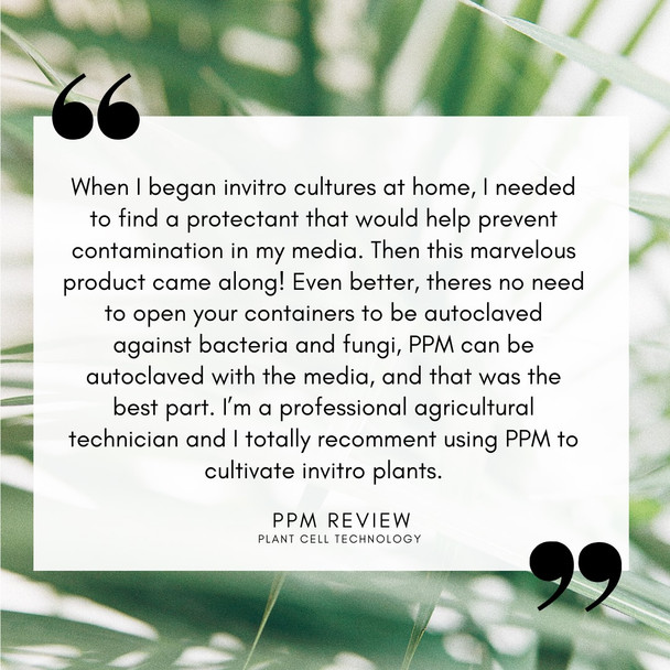 Plant Preservative Mixture (PPM), is a broad-spectrum biocide/fungicide for plant tissue culture. PPM™ is the ultimate solution to the never-ending struggle against microbial airborne, waterborne and endogenous contamination.